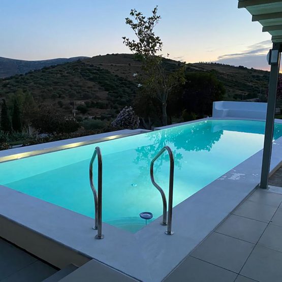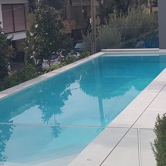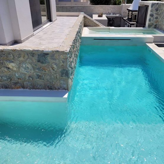 Οι Πισίνες με υπερχείλιση μπορεί να έχουν μια παραπάνω κατασκευή αλλά συστήνεται ανεπιφύλακτα ειδικά σε μεγάλες πισίνες. Υπάρχει κανάλι υπερχείλισης. Το νερό εισέρχεται από την δεξαμενή υπερχείλισης και από τον πυθμένα της πισίνας και περνά μέσα από το φίλτρο άμμου, τον χλωριωτή και τον ρυθμιστή PH και μετά στην πισίνα.
